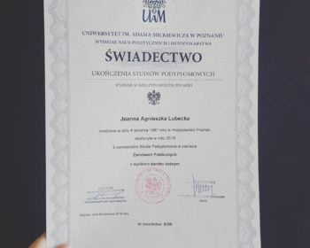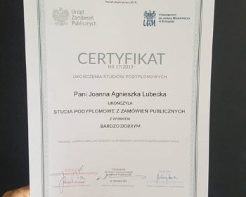 Z przyjemnością informuję, że ukończyłam wczoraj moje już trzecie studia, tym razem podyplomowe z Prawa zamówień publicznych na Uniwersytecie im. Adama Mickiewicza w Poznaniu.
